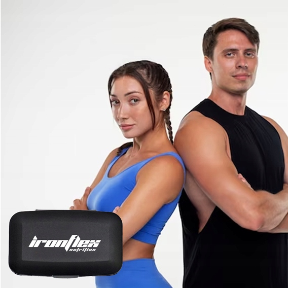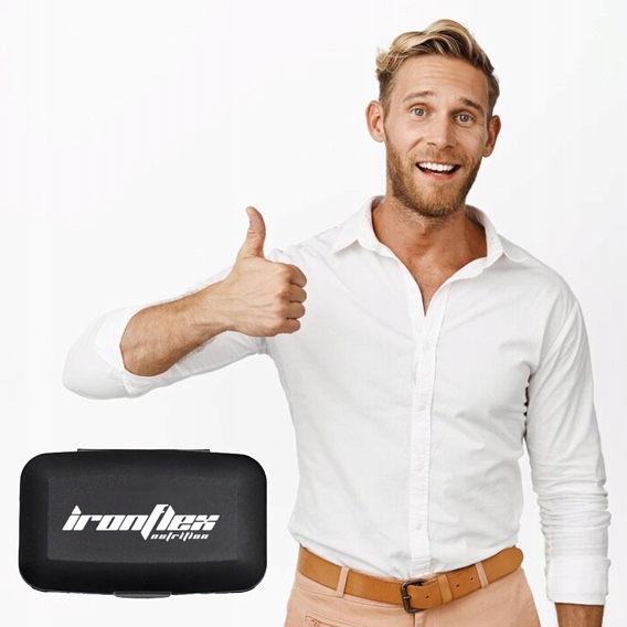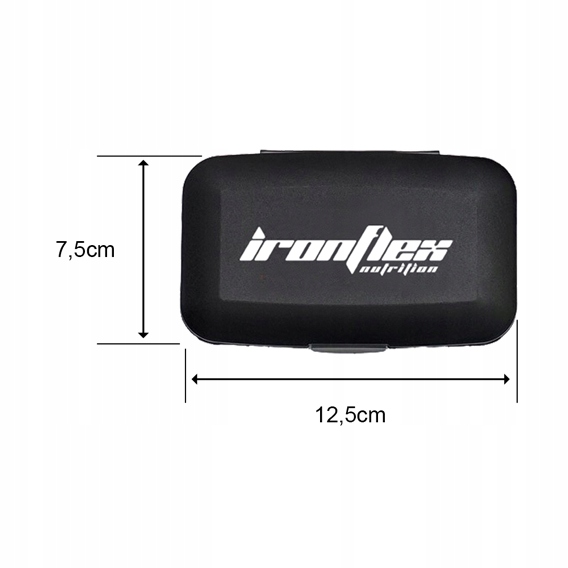 Oryginalny pillbox w kolorze czarnym, ozdobiony logotypem naszej marki IronFlex Nutrition. Starannie wykonany z najlepszych materiałów o wysokiej trwałości i wytrzymałości. Posiada system przegródek, które umożliwiają wygodną organizację i zabranie z sobą nawet kilku porcji tabletek lub kapsułek. Jest on bardzo lekki i poręczny, zmieścisz go do każdej torby i plecaka, nie zajmie dużo miejsca.