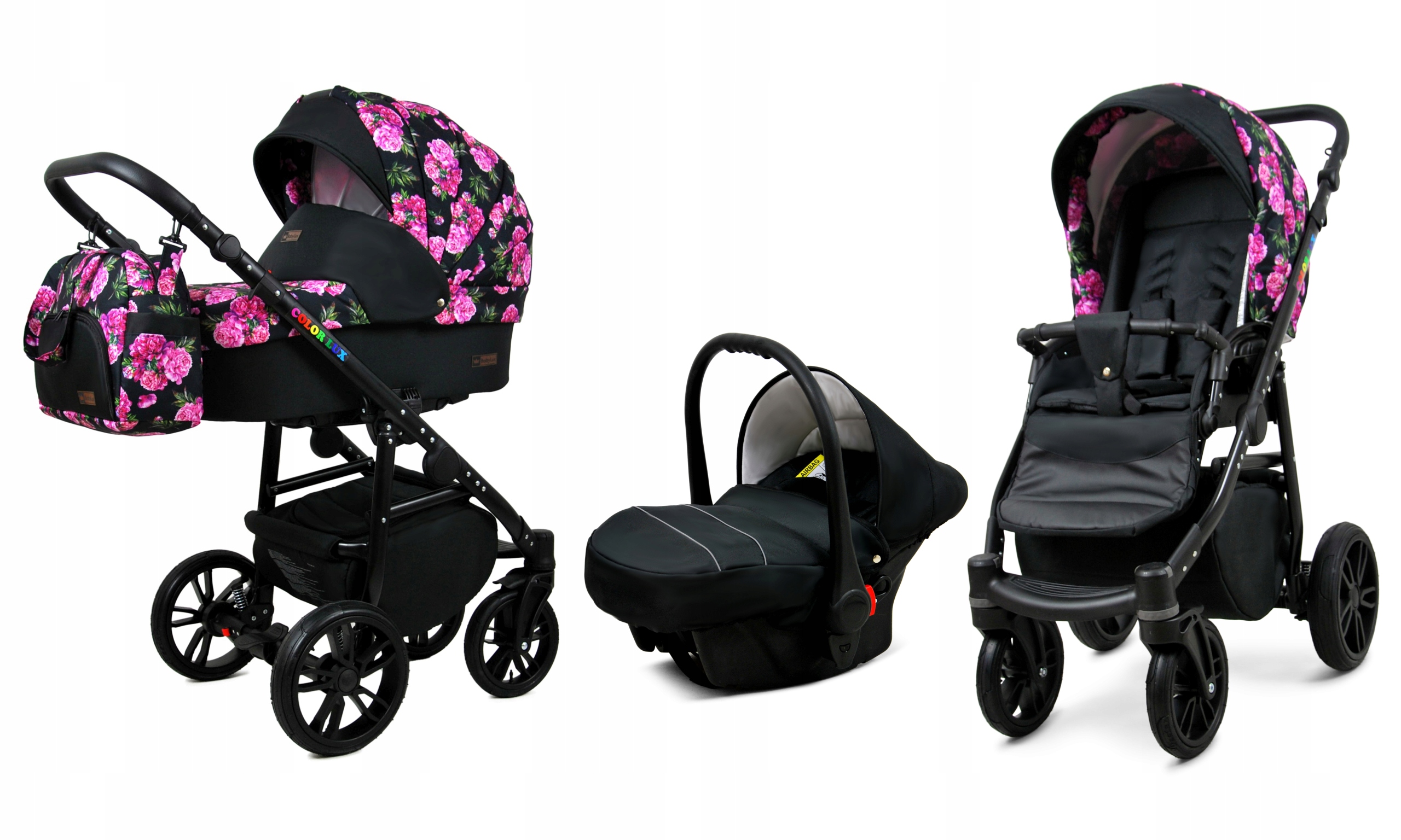 Color Lux 3w1 to коллекция известного европейского бренда глубокий, крепление на раме коляски. Сделано владеющих Черный, который не только выглядит необычно очень путешествующему ребенку воздуха функциональность как направляющая, перила и подножка прогулочной коляски были сделаны из экокожи. Таким образом, продукт будет служить