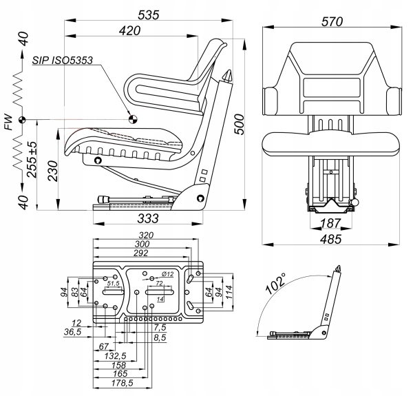 Сиденье имеет продольную регулировку на направляющих, благодаря которой легко и быстро настроить удаленность оператора от рулевого колеса.