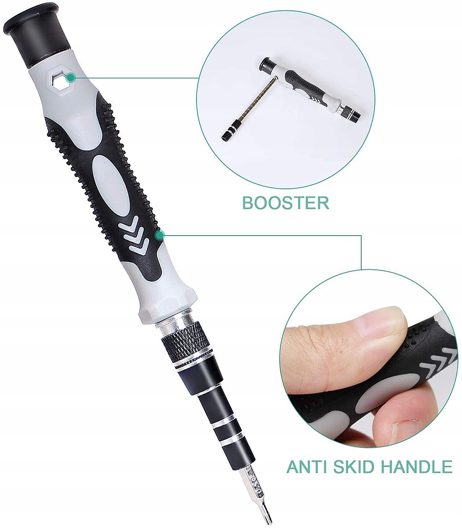RT0133 to zestaw 112 precyzyjnych narzędzi, bitów i otwieraków z lekkim aluminiowym uchwytem przeznaczony do precyzyjnych napraw serwisowych telefonów i smartfonów w tym produktów marki Apple oraz wszelkiej elektroniki konsumenckiej.
