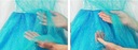 Платье точно смоделирован по образу и подобию платья Эльзы, тщательно сшитый из блестящего и блестящих материалов. На корсете, вшитая "brylanciki" в форме снежинки, рукава, сшитые из тонкой белой туман. Низ платья сделан из 2 слоев: мерцающий материал и prześwitująca серебристая ткань. Произведение венчает шлейф мерцающий в танце пайетками.