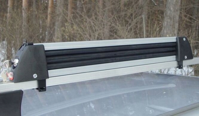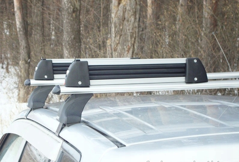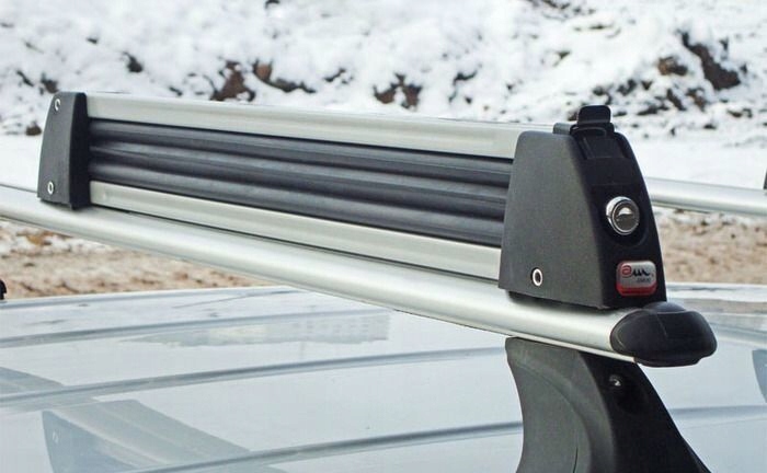Uchwyt narciarski, który pozwala na przewóz 3 par nart lub 2 desek snowboardowych na dach samochodu.