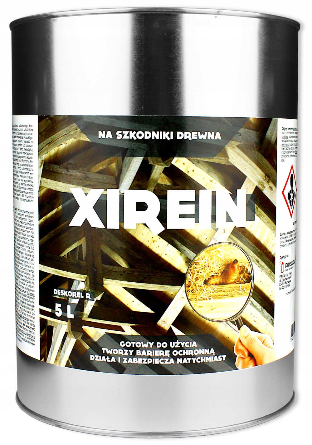 Bezbarwny i bezwonny preparat XIREIN przeznaczony do zabezpieczania drewna budowlanego, konstrukcyjnego, przed działaniem owadów technicznych szkodników drewna (bez termitów) oraz zwalczania w już zainfekowanym drewnie, w klasie 1,2 i 3 użytkowania.