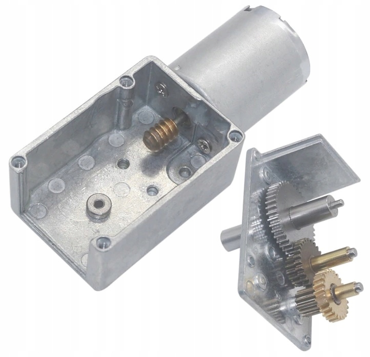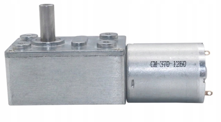 Mini silnik 12V DC wyposażony w przekładnie ślimakową. Przekładnia jest metalowa i samohamowna.
