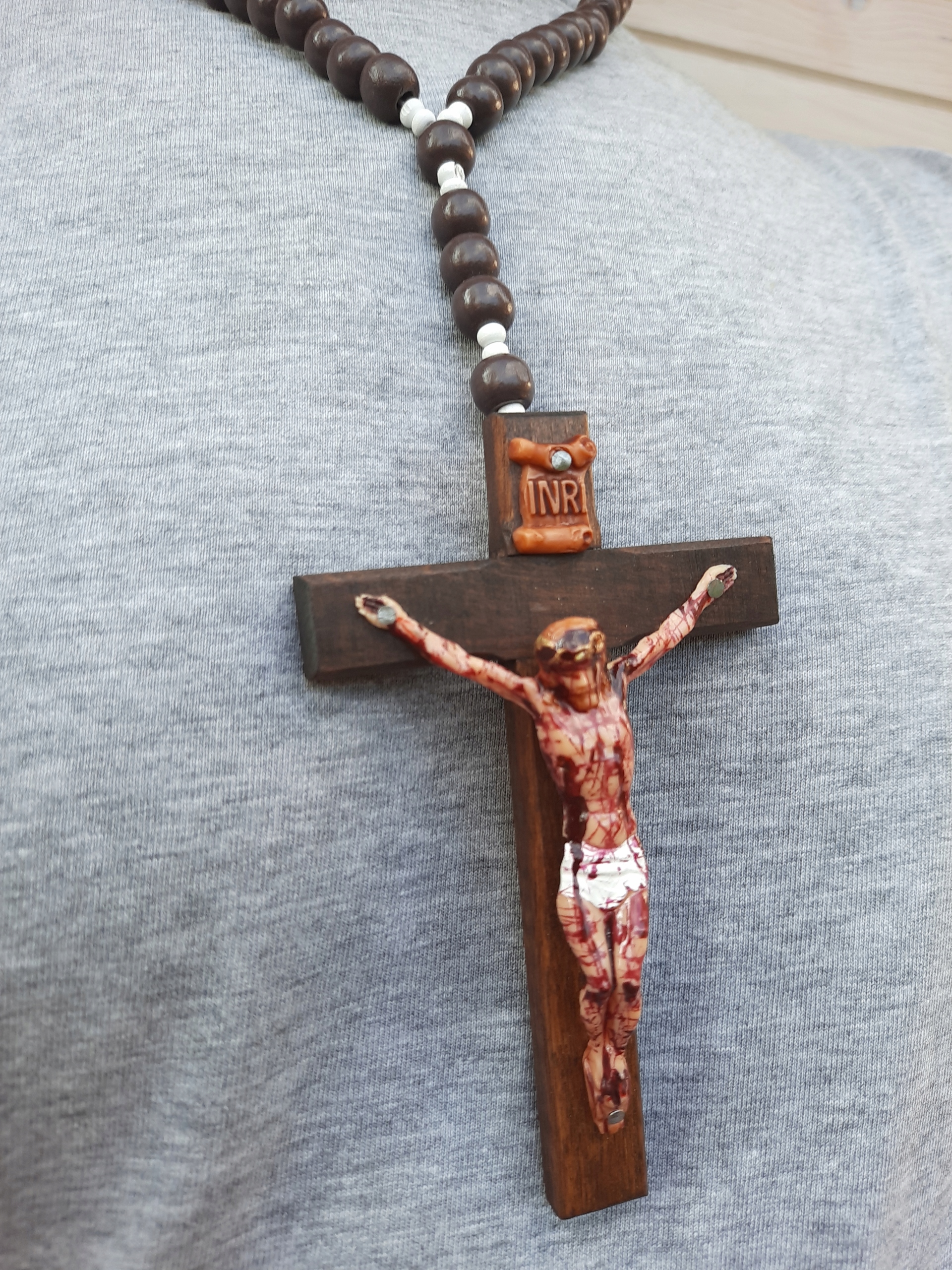 Różaniec z łatwością można założyć go na szyję.