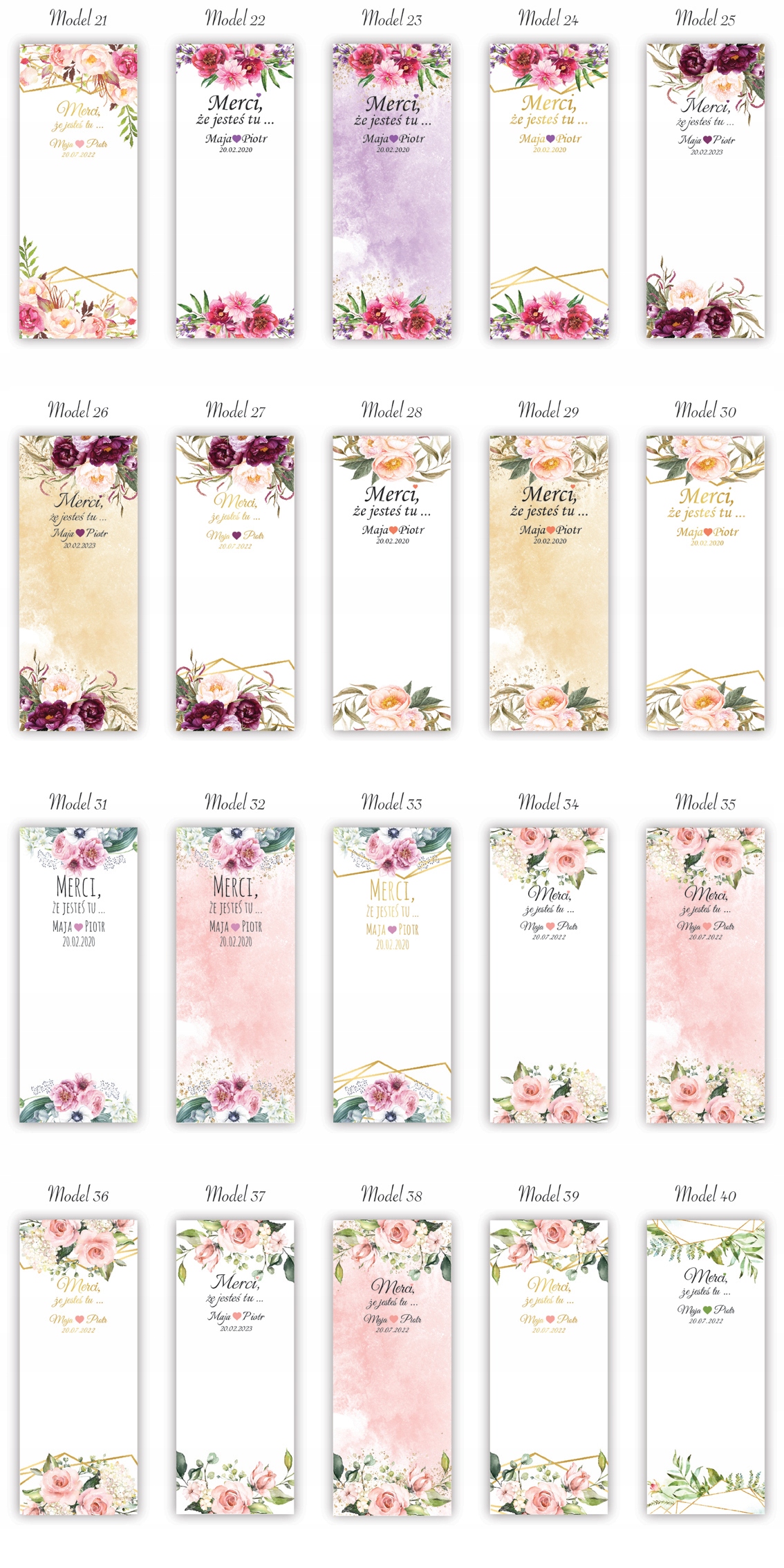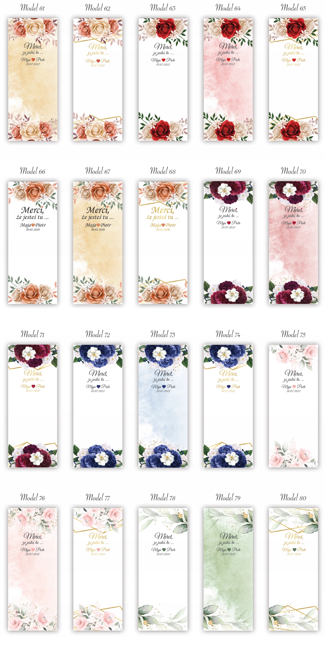 Przy zakupie poniżej 10 zestawów ( 50 sztuk podziękowań ) usługę personalizacji należy dokupić na osobnej aukcji