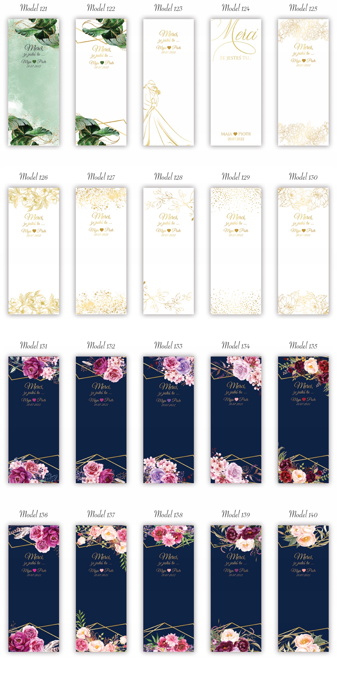Cena dotyczy 1 kompletu = 5 sztuk podziękowań