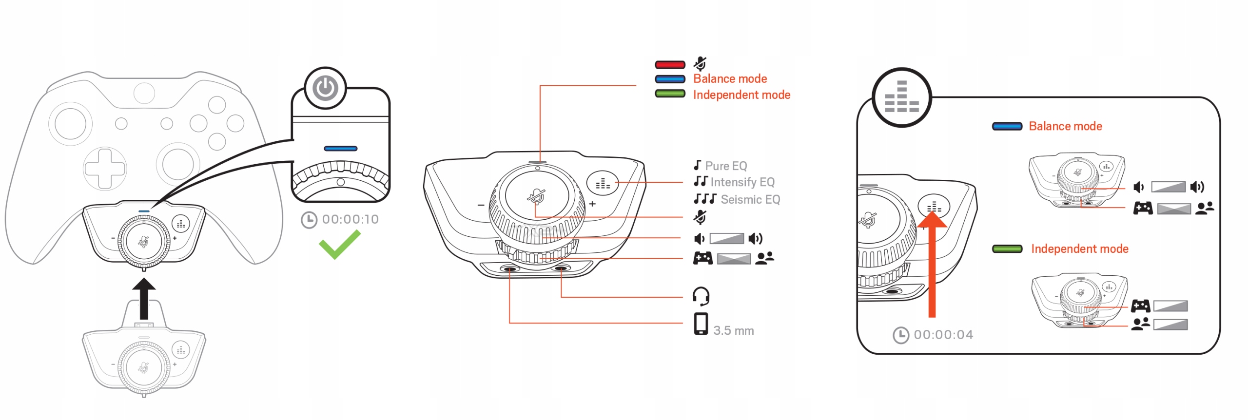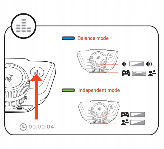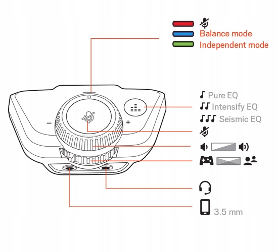 Analogowe sterowanie na dwóch kołach umożliwia regulację głośności głównej i balansu gry / czatu.