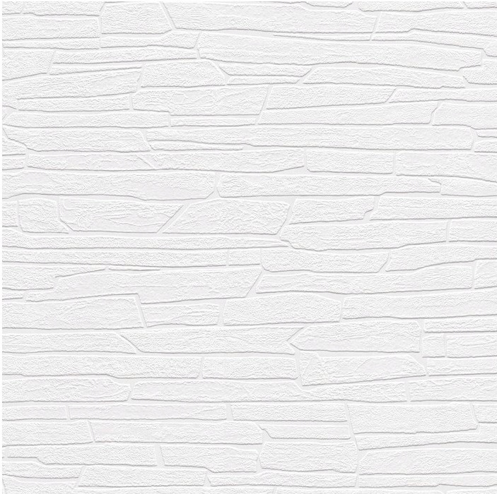 Поверхность камня слегка выпуклая (около 1 мм). Обои имеет оттенки белого. Дополнительным преимуществом является возможность покраски обоев.