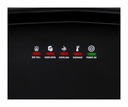 Niszczarkę wyposażono również w funkcję rewersu, dzięki czemu w przypadku zacięcia, automatycznie wycofuje materiał ze szczeliny, zmniejszając ryzyko zakleszczenia dokumentów dodatkowo zabezpieczona jest przed przegrzaniem. Urządzenie posiada pojemnik na odpadki o pojemności 21 litrów