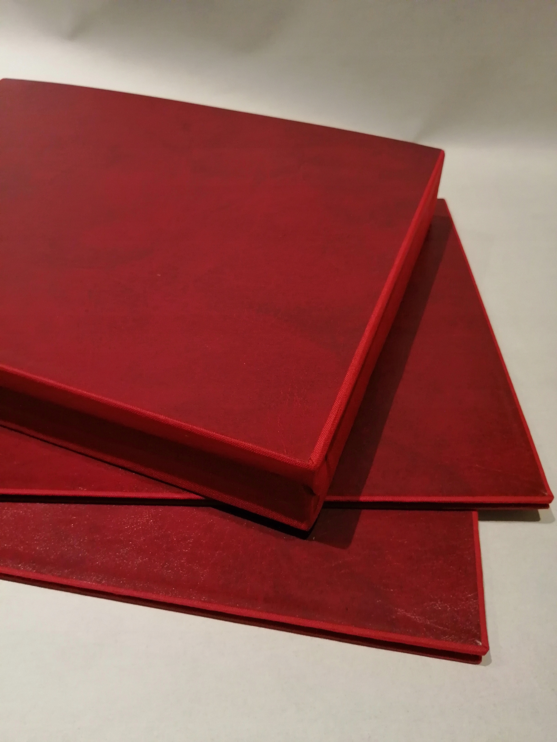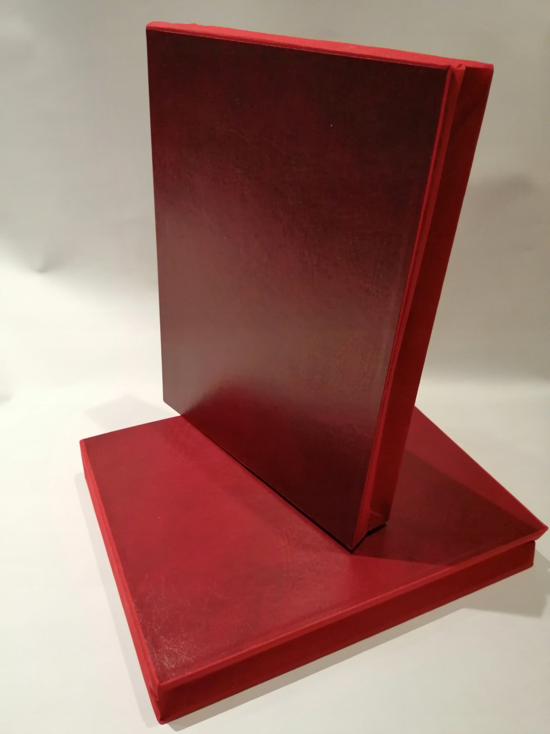 Конструкция-твердый картон с наклеенной итальянской переплетной тканью . Стороны, оклеенные шпоном Премиум о текстуре кожи .