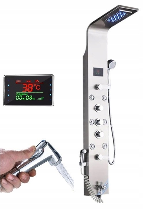 To ekskluzywny, stylowy, nowoczesny panel prysznicowy z hydromasażem, wodospadem, deszczownicą i diodami LED .