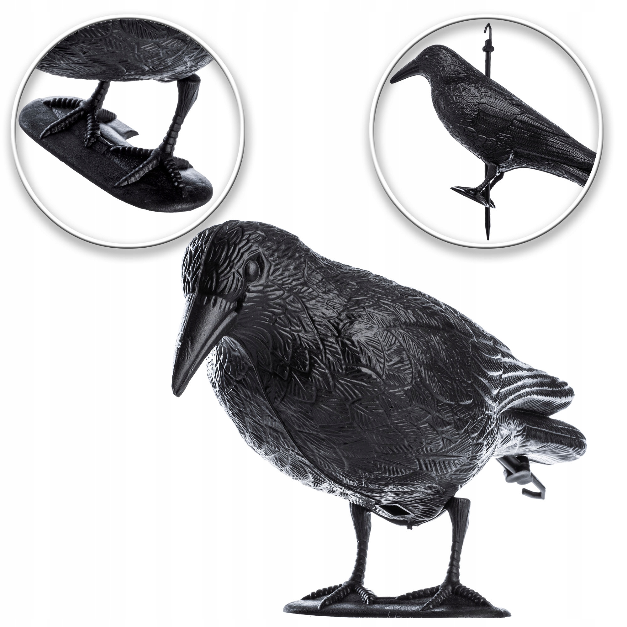 Kształty, proporcje , kolor oraz gabaryty odwzorowują idealnie prawdziwego kruka dzięki czemu nasz produkt stanowi doskonały postrach dla wszelkiego rodzaju ptactwa żerującego (w tym gołębi).