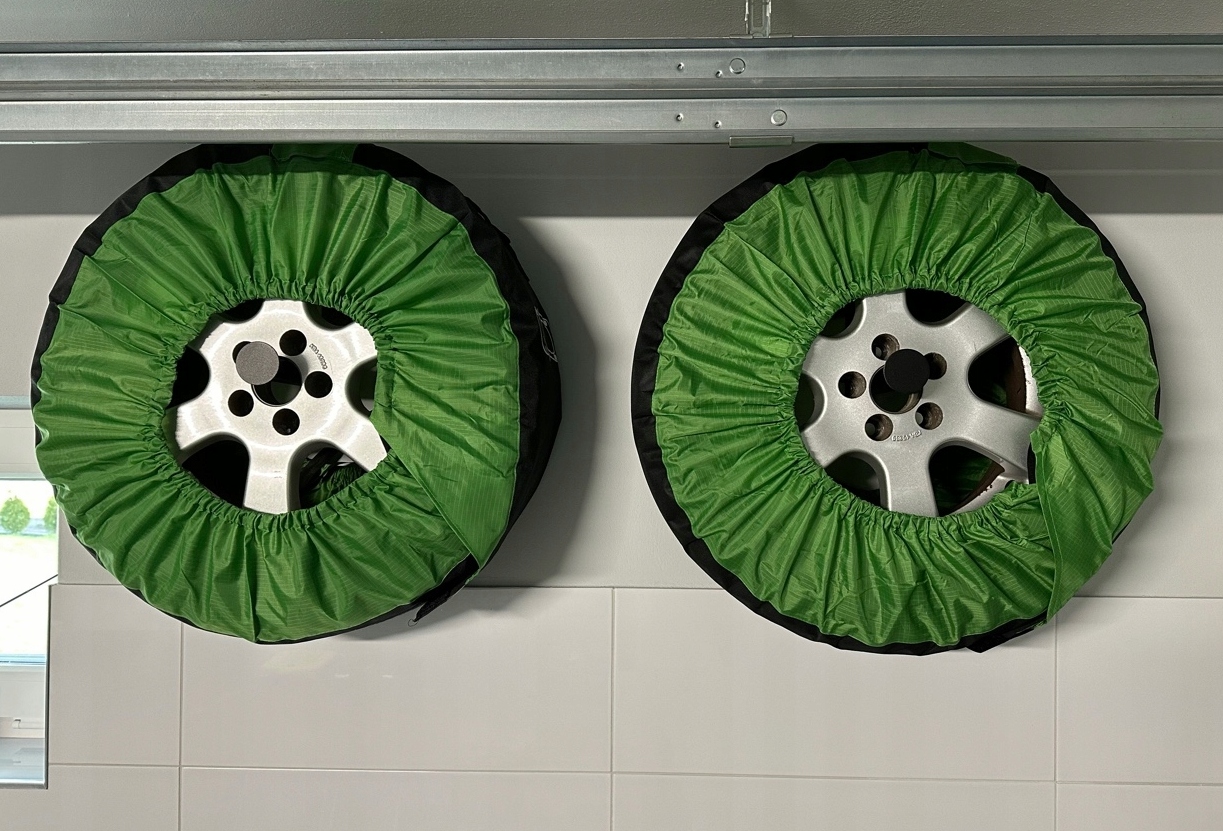 Oponę wieszamy za krawędź, a felgę za środkowy otwór. Wieszak może też mieć inne zastosowania.
