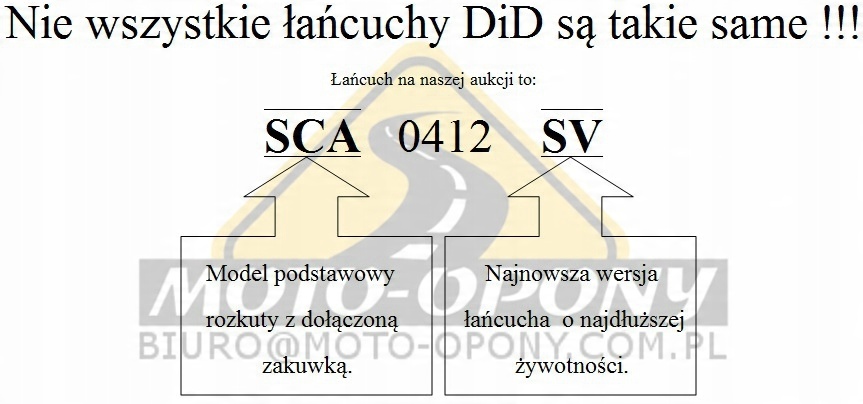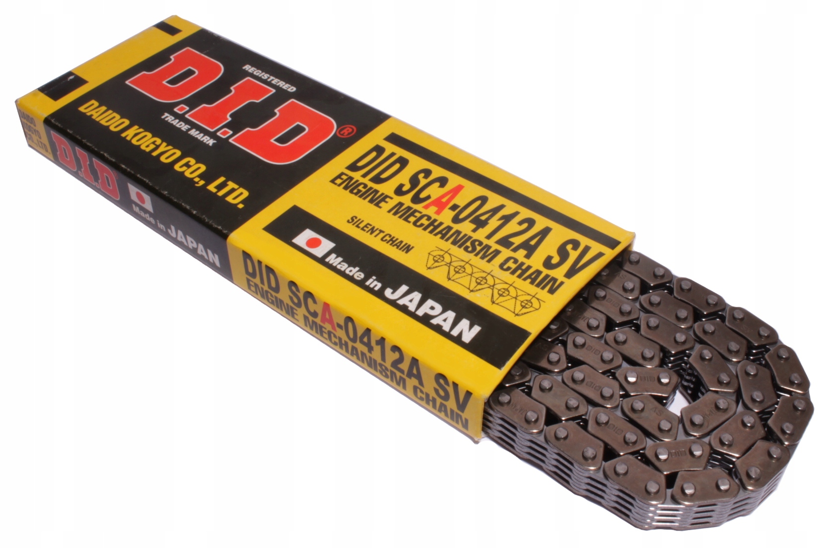 Opis produktu - Łańcuchy rozrządu DiD to produkty najwyższej jakości światowego lidera w produkcji części do motocykli. Cechują się one ogromną wytrzymałością na zerwanie, rozciąganie oraz bardzo cichą pracą. Zapewniają one pewność prawidłowej pracy silnika na wiele lat. Łańcuch posiada 130 ogniw. W zestawie jest zakuwka.