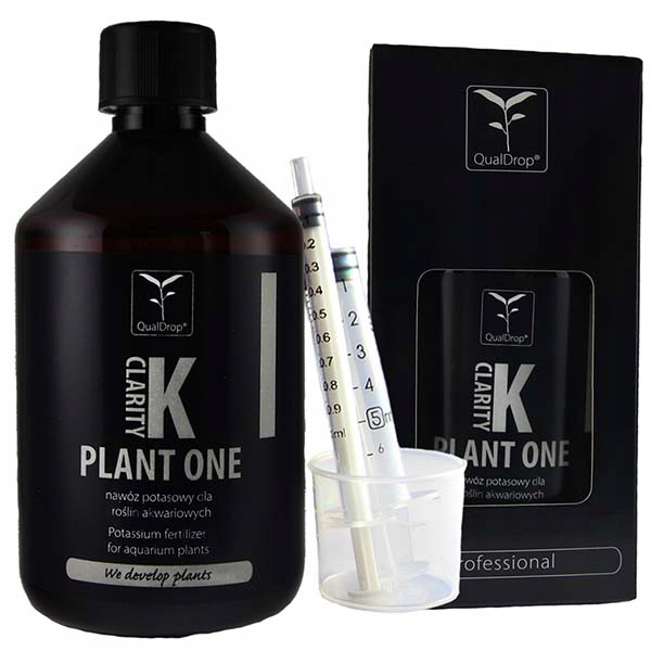 K CLARITY ONE to preparat dostarczający potas, niezbędny do wzrostu i metabolizmu roślin. Dzięki specjalnej formule potas jest łatwo i szybko przyswajalny przez rośliny. K CLARITY ONE jest szczególnie polecany do zbiorników z aktywnym podłożem i systemem dozowania CO2. Rekomendowane stężenie potasu w typowym akwarium roślinnym wynosi od około 5 do 15 mg/l. Optymalne dawki i docelowe stężenie potasu należy dobrać indywidualnie do każdego akwarium biorąc pod uwagę ilość i gatunki roślin, oświetlenie, rodzaj podłoża, twardość wody, stężenie CO2 oraz stężenia innych składników pokarmowych roślin takich jak azot czy fosfor.