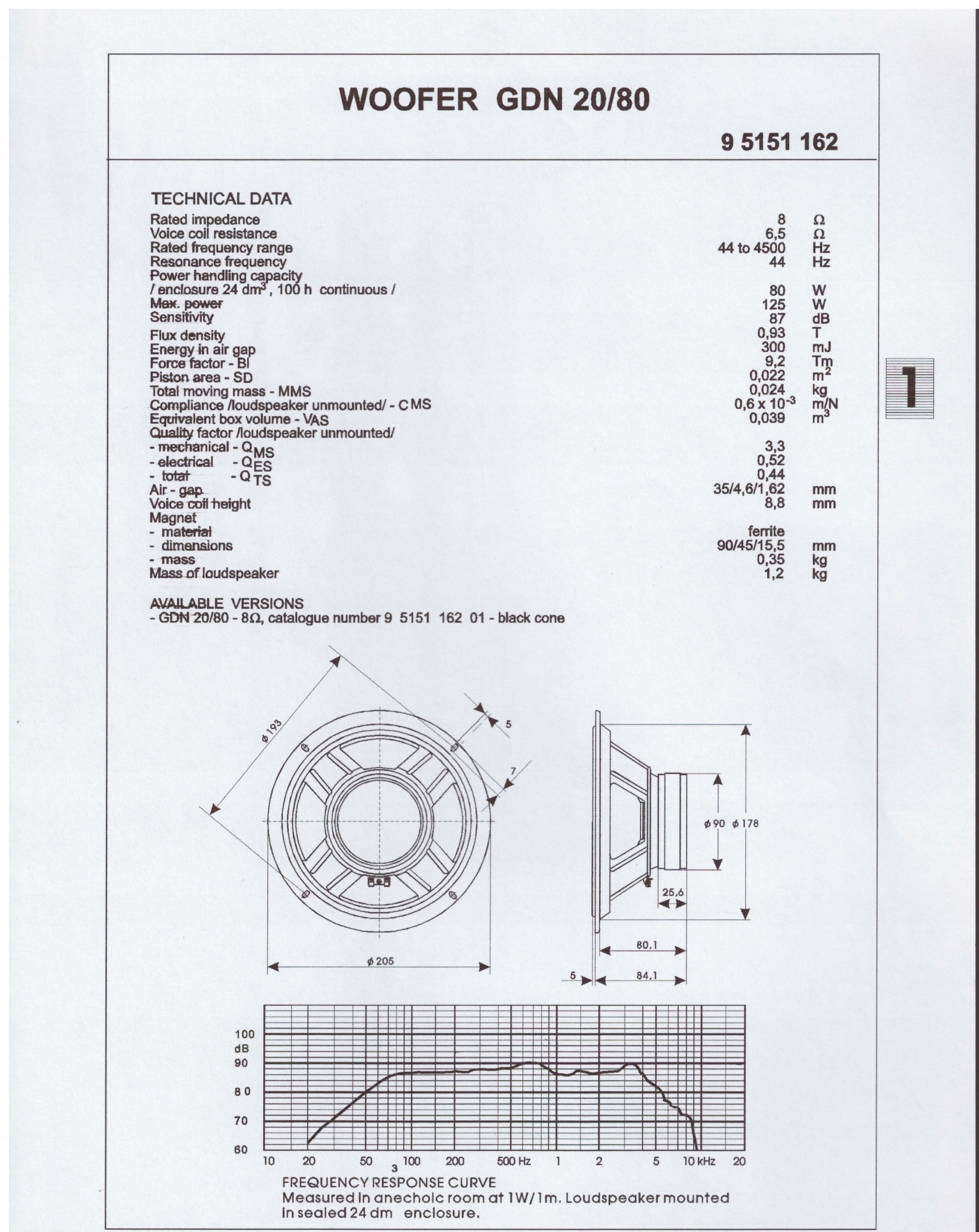 Код производителя GDN 20/80 8 Ом