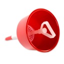W sytuacji gdy jest już nalana odpowiednia ilość płynu do butelki, gumowa uszczelka unosi się do góry, wtedy możemy bezpiecznie usunąć lejek za uchwyt z butelki pomimo, że nadal znajduje się w nim płyn.