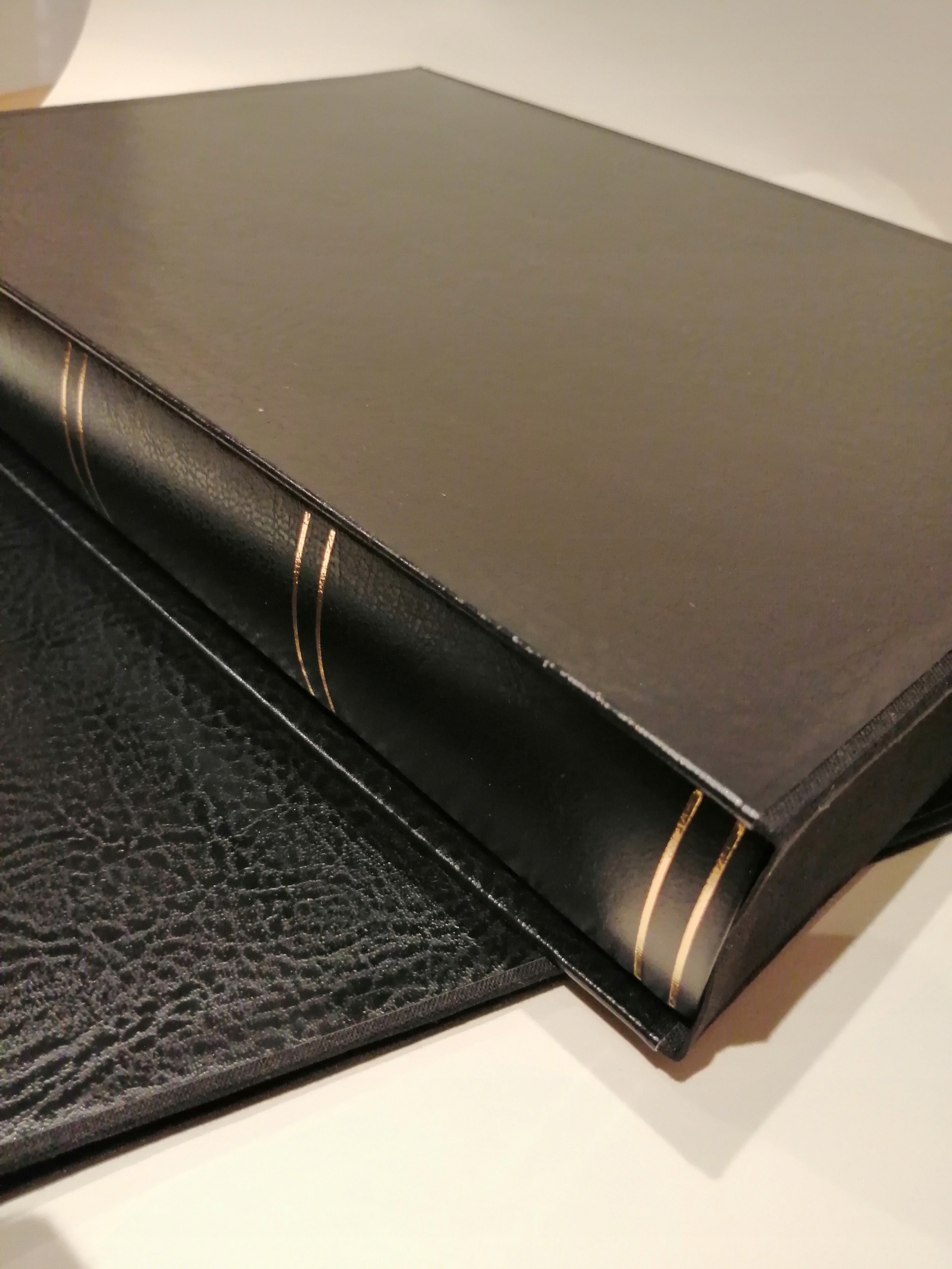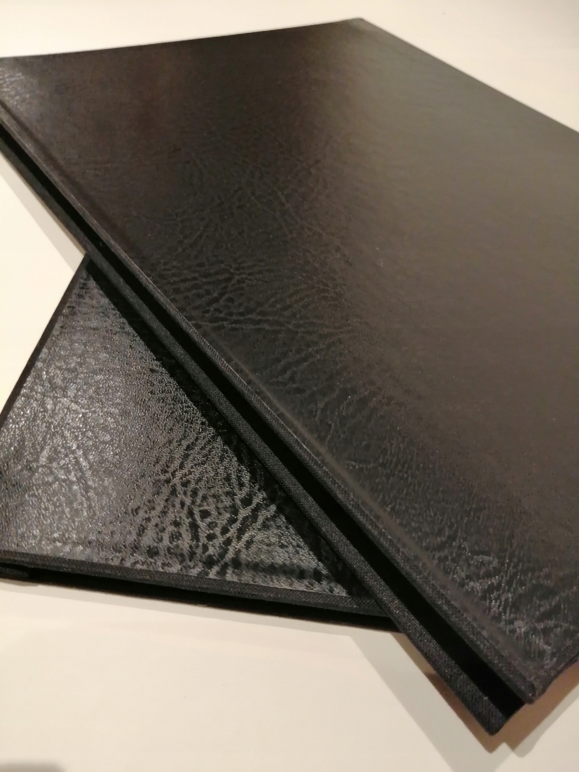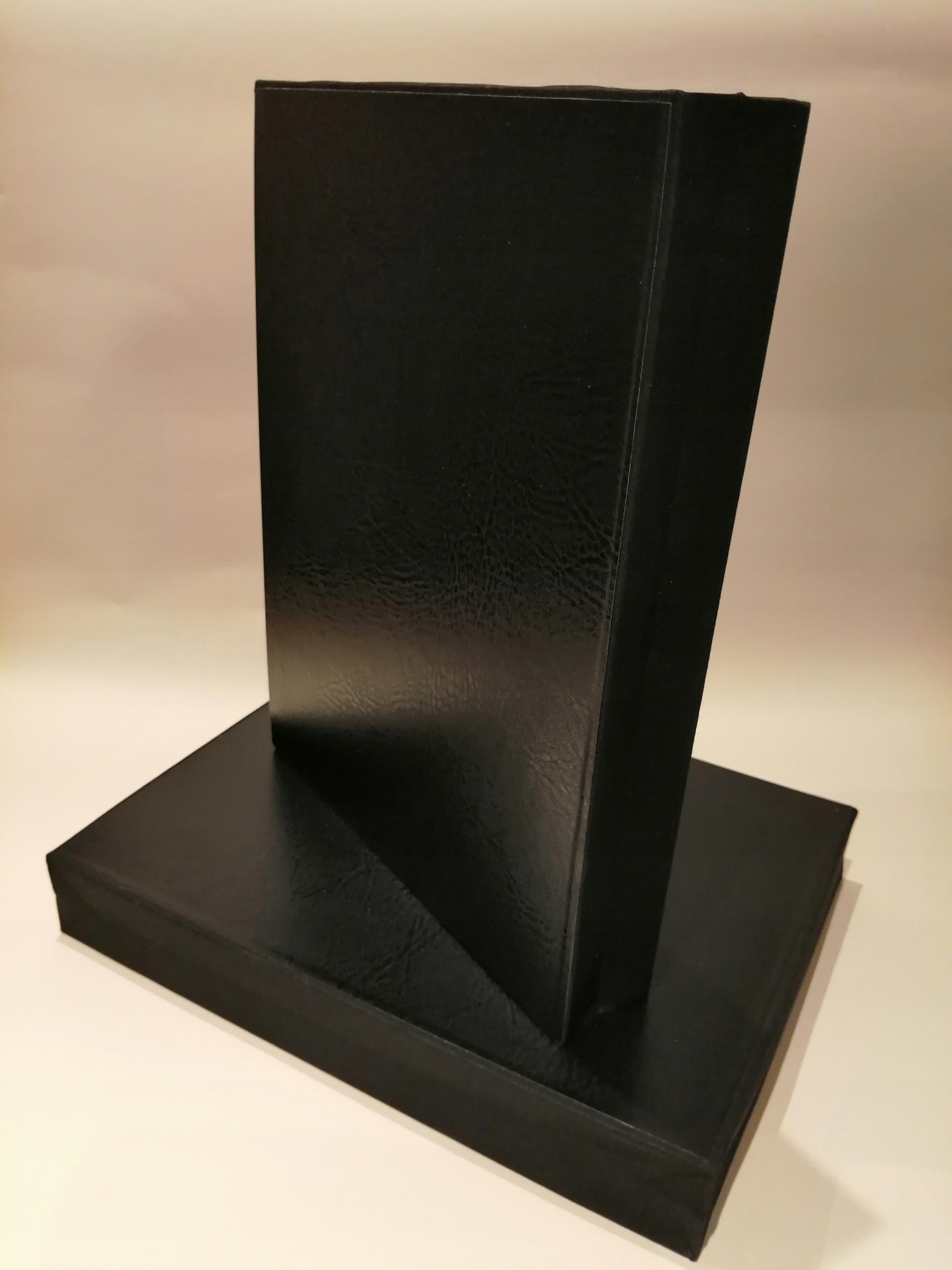 Конструкция-твердый картон с наклеенной итальянской переплетной тканью . Стороны, оклеенные шпоном Премиум о текстуре кожи .