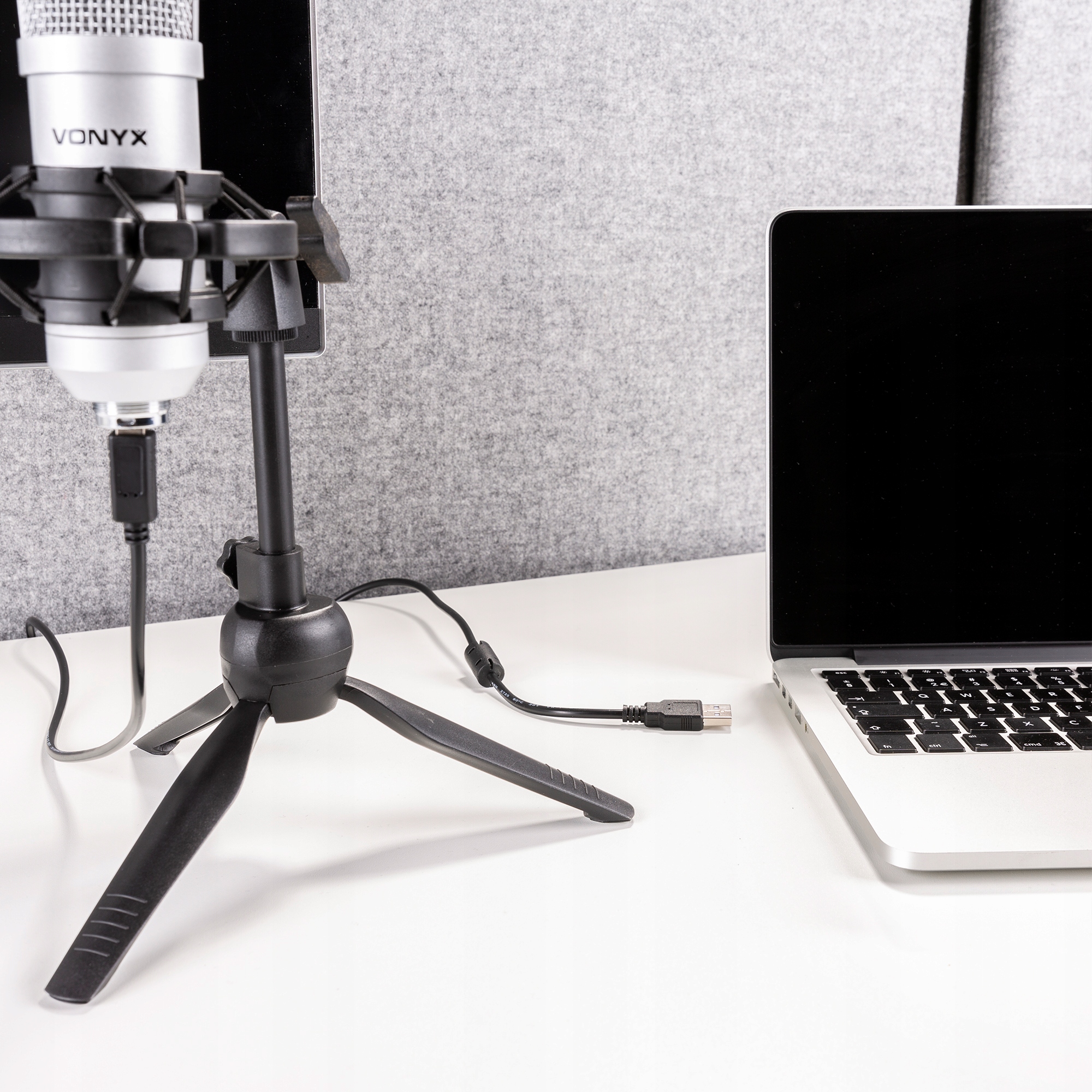 Wystarczy postawić statyw w odpowiednim miejscu, podłączyć mikrofon do komputera i natychmiast można rozpocząć nagrywanie, video-konferencje lub transmisje na żywo.