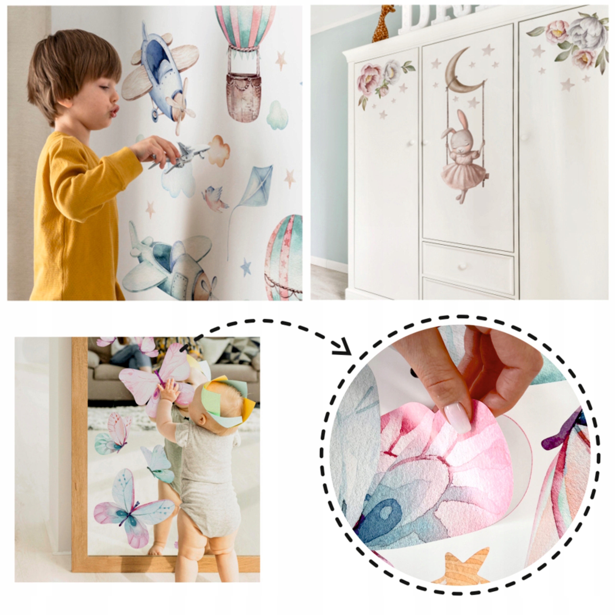 ⭐ Ten zestaw naklejek to doskonały sposób, aby w prosty sposób dodać dziecięcemu pokojowi koloru i przytulności.