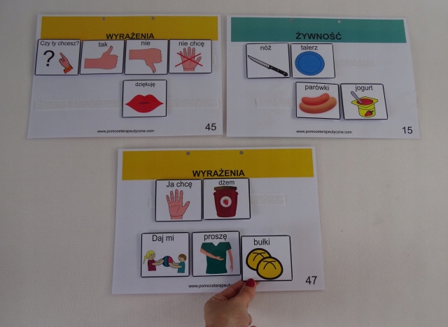 Możemy układać z dzieckiem różne zdania poprzez stosowanie piktogramów. Dziecko ma możliwość powiedzenia nam co w danym momencie chce robić, na co ma ochotę, czy powiedzieć jak się czuje. Posłuży nam do tego bogata seria różnorodnych obrazków.