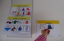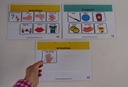 1) Książki łącznie z 54 szt. zalaminowanymi kartami aktywności do nakładania wszystkich piktogramów w segregatorze w formacie A5