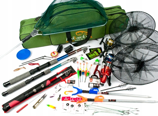 И все аксессуары на фото ниже, позволяющие ловить рыбу на поплавке, грунте и spinning. Аксессуары цвета случайные: