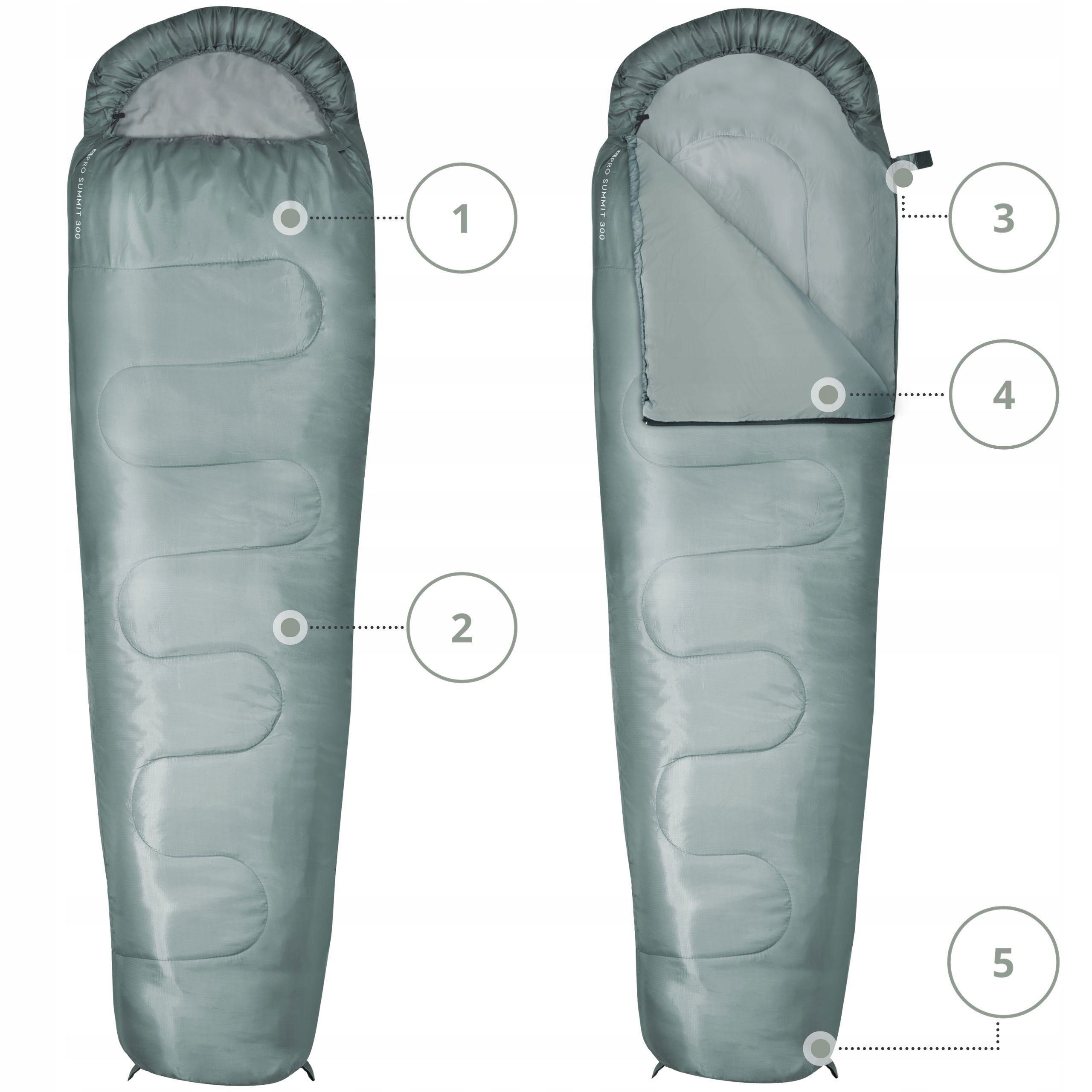 Dzięki zastosowaniu w konstrukcji pokrowca pasów kompresyjnych spakowany śpiwór można zmniejszyć jeszcze prawie o połowę. Dzięki temu rozwiązaniu zajmuje on dużo mniej miejsca np. w plecaku. Pasy kompresyjne stanowią też wygodne uchwyty