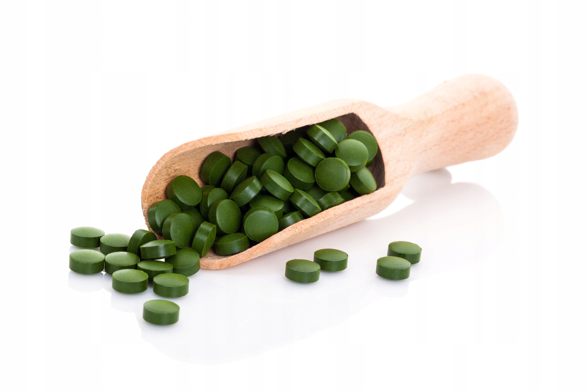 Wysokiej jakości spirulina i chlorella w formie tabletek, opakowanie 2 x 250 g - po około 1000 tabletek.