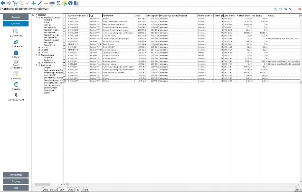 WAPRO Fakturka daje możliwość drukowania zestawień takich jak: