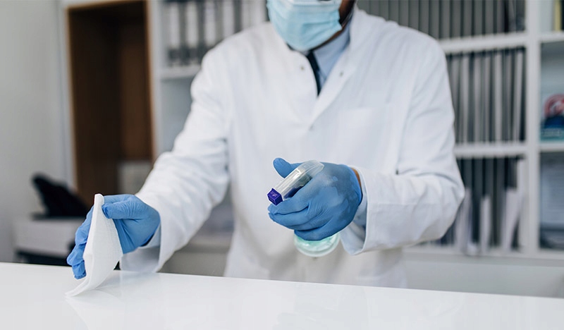 ✔️ Раствор готов к использованию, для распыления или протирания. Полностью покрыть дезинфицированную поверхность препаратом с помощью распылителя на расстоянии ок. 30 см и дайте высохнуть или залейте поверхность, заботясь о полном покрытии дезинфицированной области и затем протрите одноразовым полотенцем.