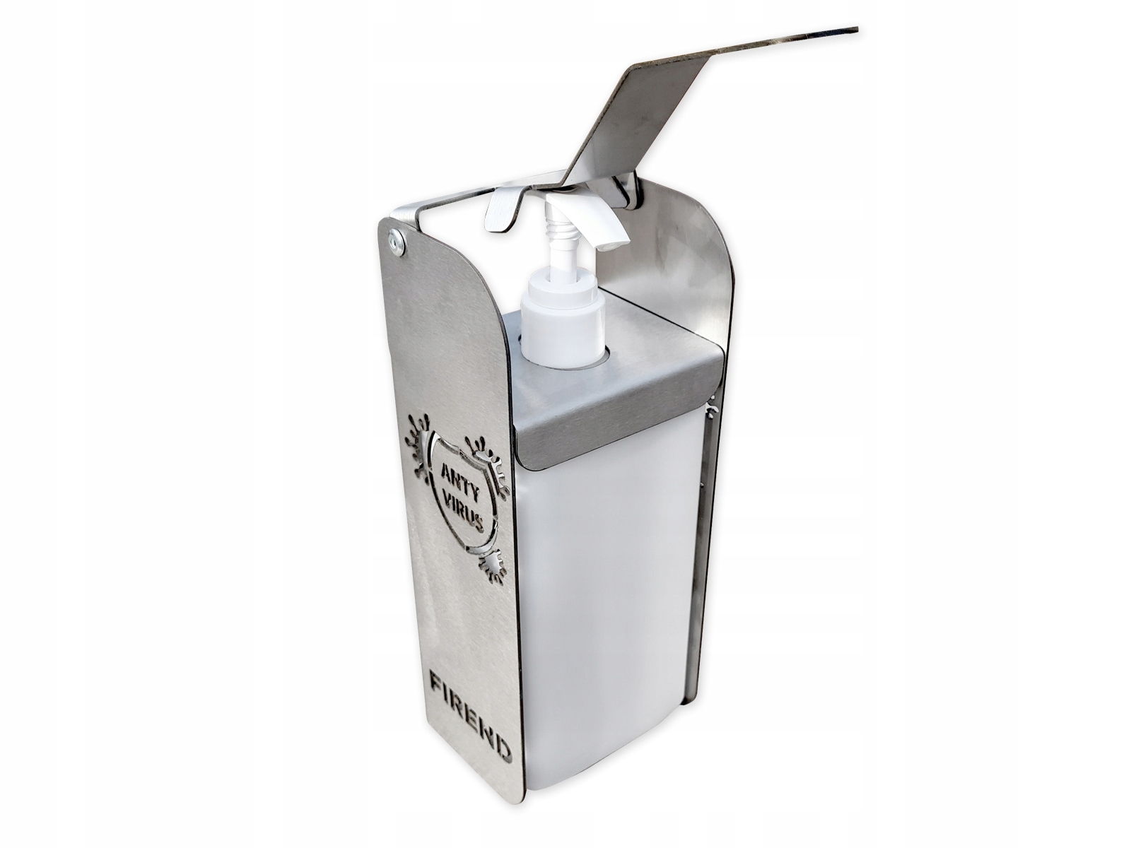 Dozownik łokciowy wiszący, wyprodukowany z mocnej stali nierdzewnej gat. 1.4301, 1,5mm!!! - bardzo trwały i estetyczny, służy do dozowania płynu czy mydła.