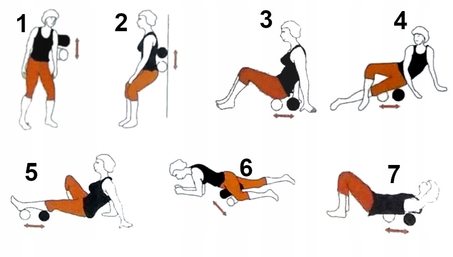 Перекатывание необходимо повторить несколько раз, возможна ощутимая боль, которая дает нам сигнал, что происходит жесткость мышцы.