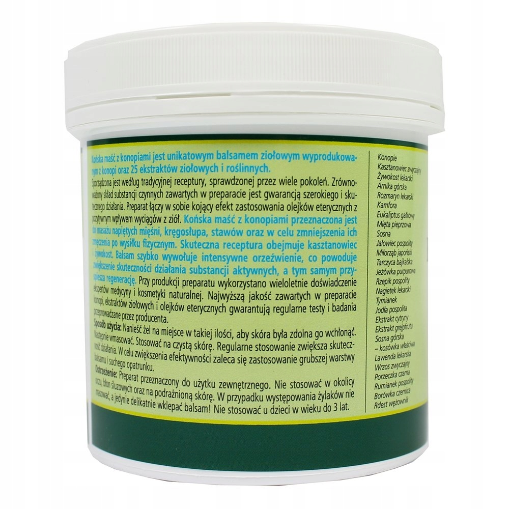 Самый большой плюс мази лошади охлаждения с небольшим количеством конопли быстрое действие – сразу после применения вы будете ощущать сильное облегчение. Конопля-это компонент, который усиливает действие регенеративные мази и делает, что она имеет еще более мощное действие. Из-за содержания экстракта конского каштана, арники горной и гинкго, конская мазь охлаждающая из конопли, является очень хорошим решением при варикозном расширении вен.