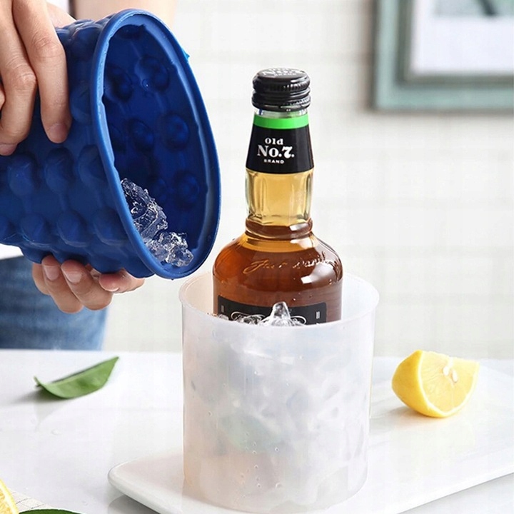 Rewolucyjna foremka na kostki lodu, łącząca w sobie zarówno funkcję kostkarki jak i wiaderka chłodzącego do napoi.