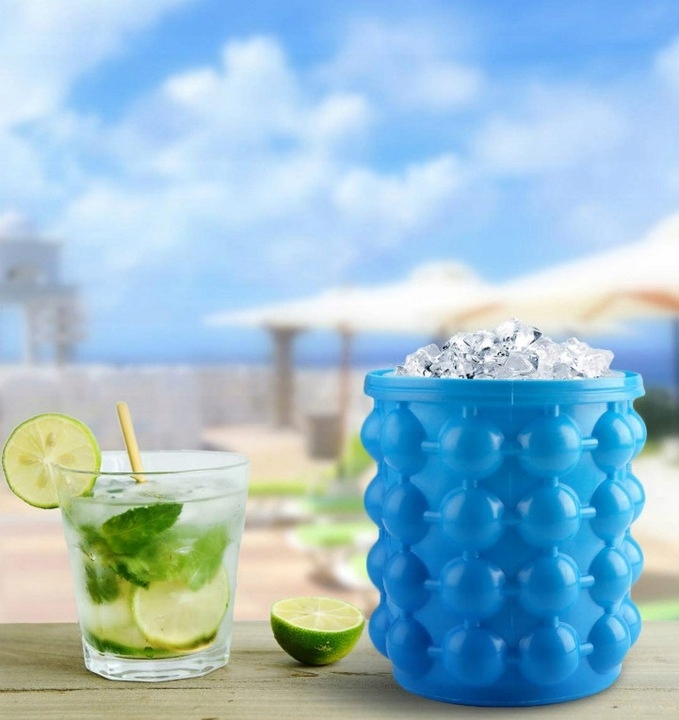 Rewolucyjna foremka na kostki lodu, łącząca w sobie zarówno funkcję kostkarki jak i wiaderka chłodzącego do napoi. Wystarczy wlać wodę pomiędzy silikonową ściankę a plastikowy wkład oddzielający, nałożyć przykrywkę i wstawić do zamrażalki.