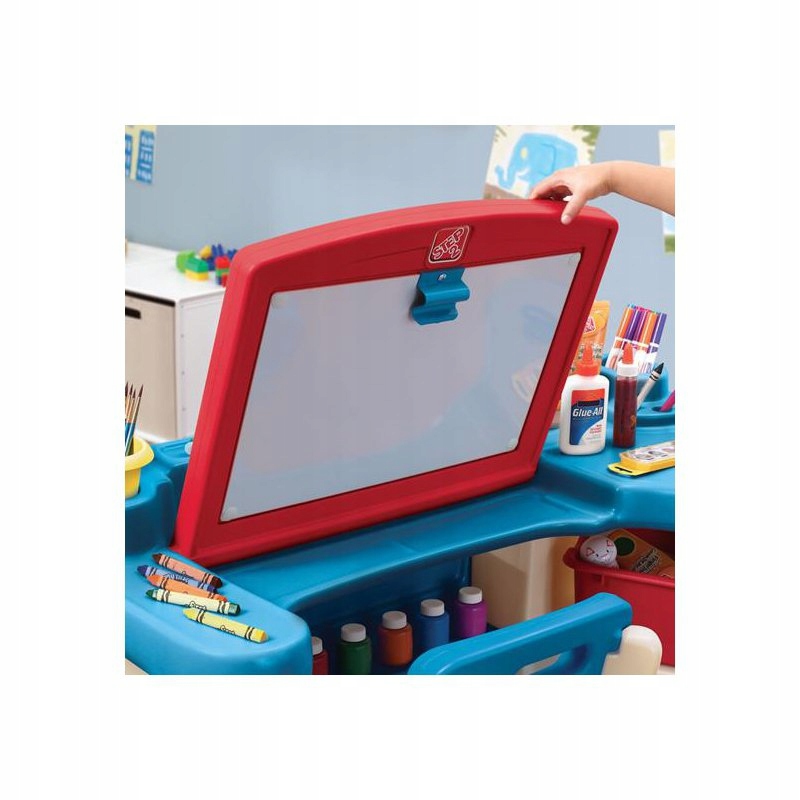 Стабильный стол с огромным количество отделений и отсеков гарантирует, что рабочее место ребенка всегда в надлежащего порядка. С другой стороны, большая рабочая поверхность 33 x 51 см обеспечит ему комфорт и удобство во время использования. Стол имеет подвижную столешницу, которая одновременно многоразовая доска с сухим стиранием, на которой дети могут писать фломастерами. В боковой на стене письменного стола есть полка, в которой ребенок может хранить свои картины, рисунки.