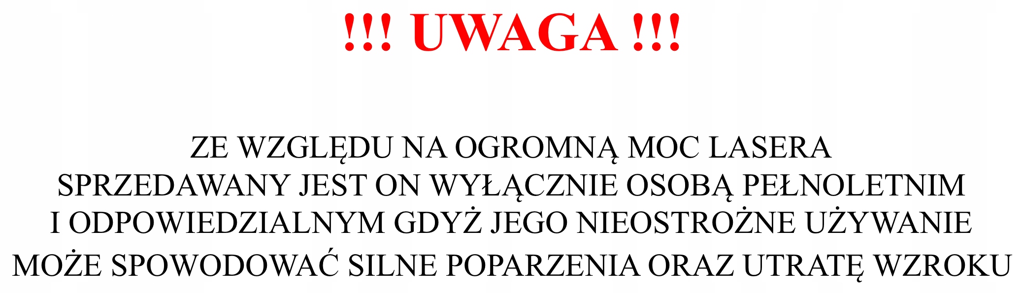 Это не игрушка, предлагаемая на других аукционах, за 200-300zł при которых присутствует описание, что лазер имеет 50 тысяч (50.000) милливатт :)) !!! Это синий лазер НАИБОЛЬШЕЙ МОЩНОСТИ (5000mW) среди ручных лазеров !!!