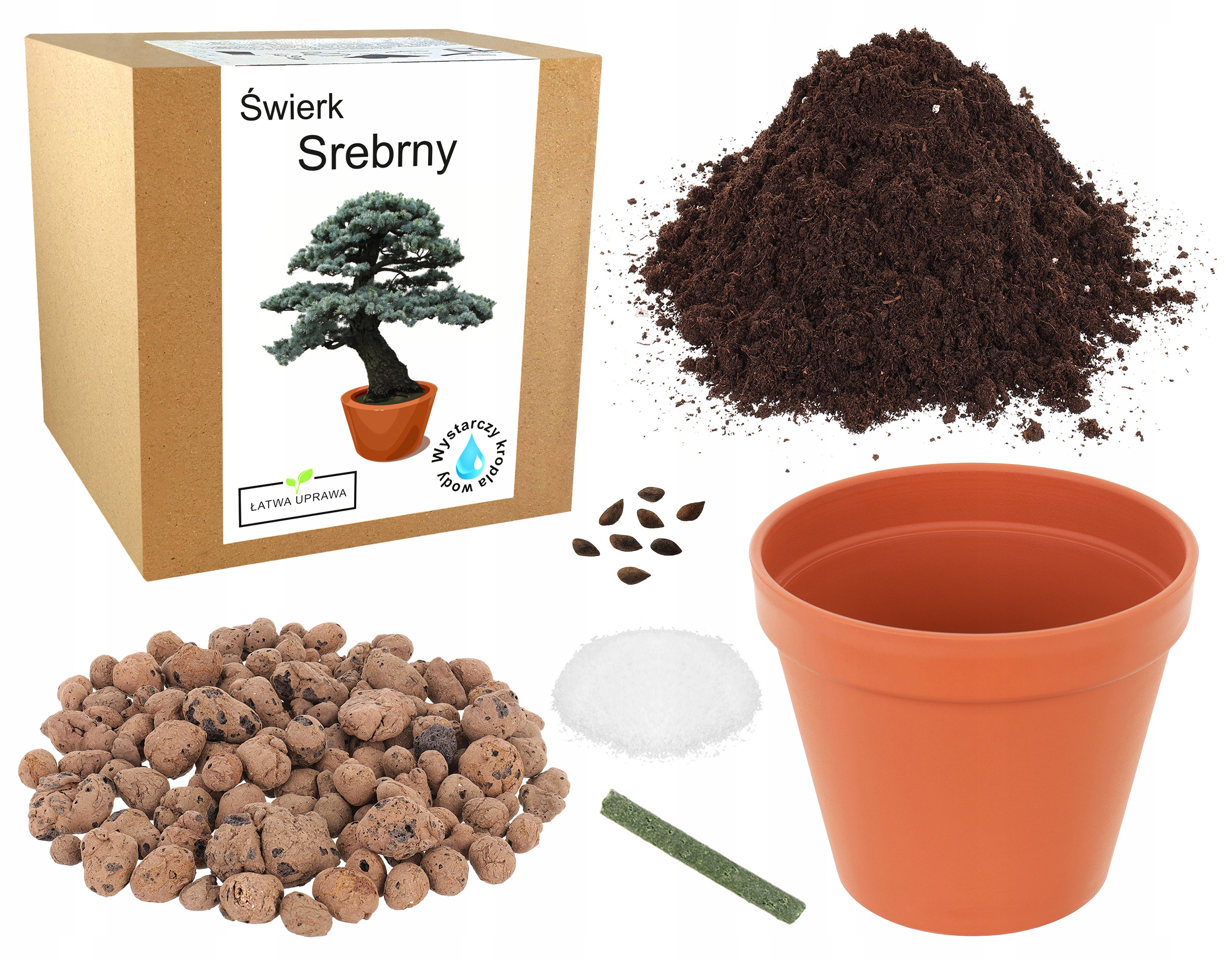 Наш набор для выращивания бонсай из серебряной ели включает в себя все, что вам нужно, чтобы начать свое приключение по выращиванию бонсай. В комплекте вы найдете горшок, семена, специально подобранный субстрат, перлит,гидрогель, керамзит и удобрение. С подробной инструкцией по выращиванию справятся даже начинающие садоводы. Идеальный выбор для тех, кто хочет создать красивый и здоровый бонсай в своем доме.