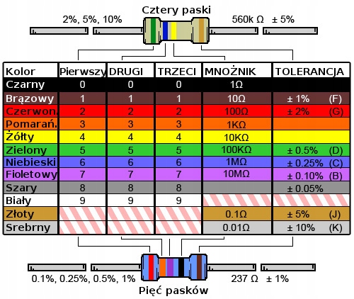 Kupując 1 komplet otrzymujesz wszystkie wymienione poniżej rezystory, łącznie 600szt. w plastikowym pudełku.