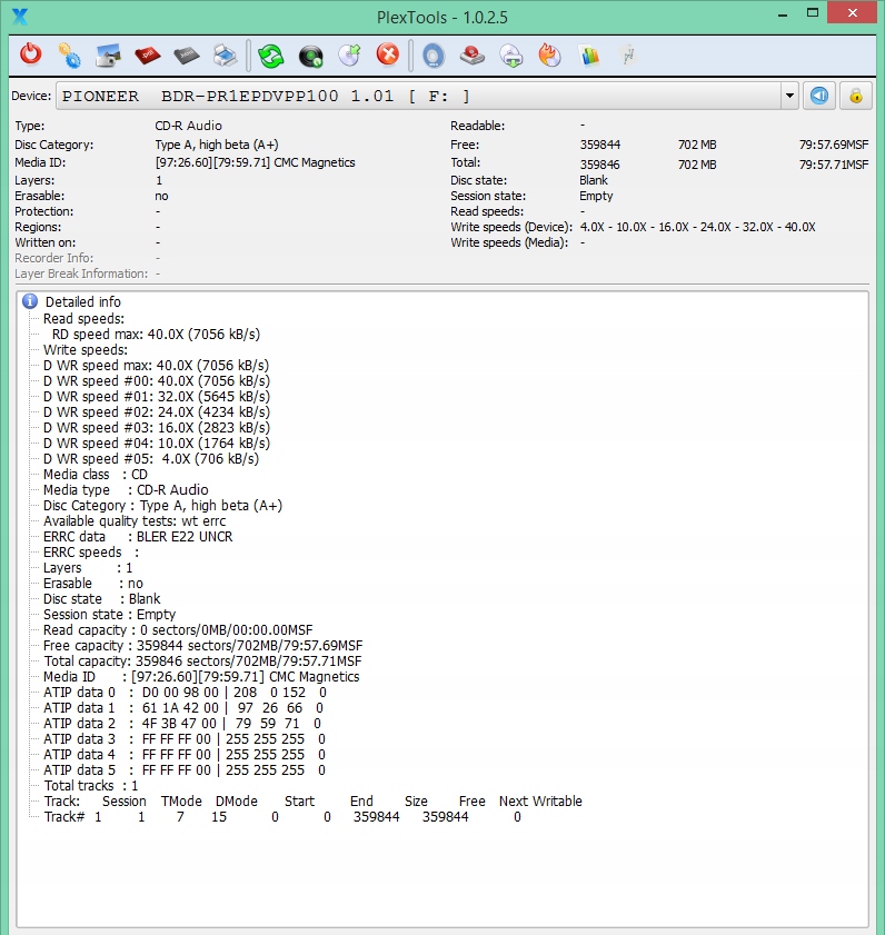 Jak również tradycyjnie dobrze nagrywające napędy CD typu LiteOn LTR-52327S-SOH-5238S,Sony CRX225-LG-GCE-8527B itp bezproblemowo zapisują ten nośnik.Idealna do CDAudio archiwizacja.
