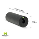 MOVO ® MINI ROLLER to wielozadaniowy przyrząd do automasażu całego ciała, o gładkiej powierzchni posiadającej lekką strukturę oraz maksymalnej twardości (minimalna sprężystość pod naciskiem palców 1 mm).