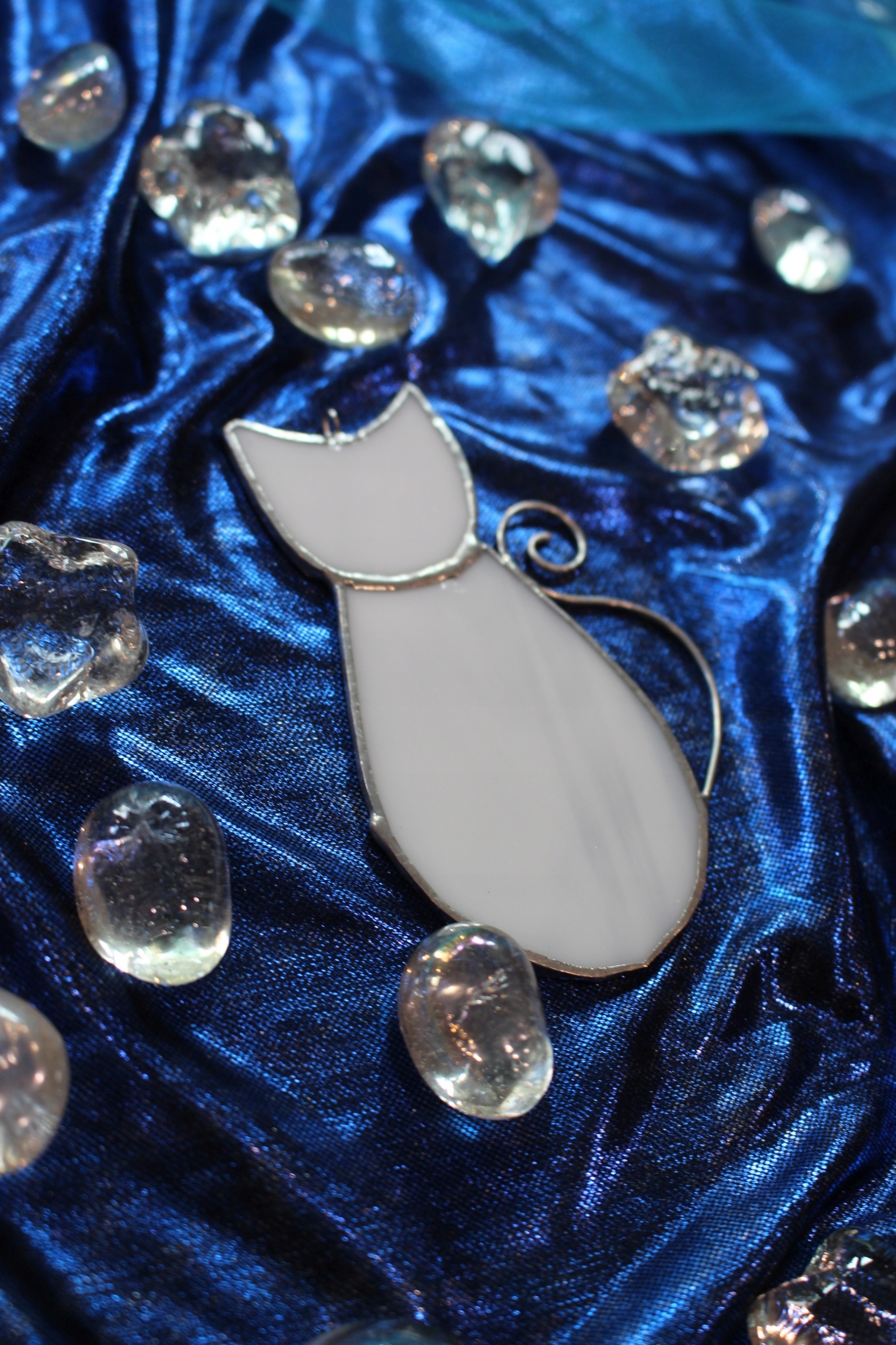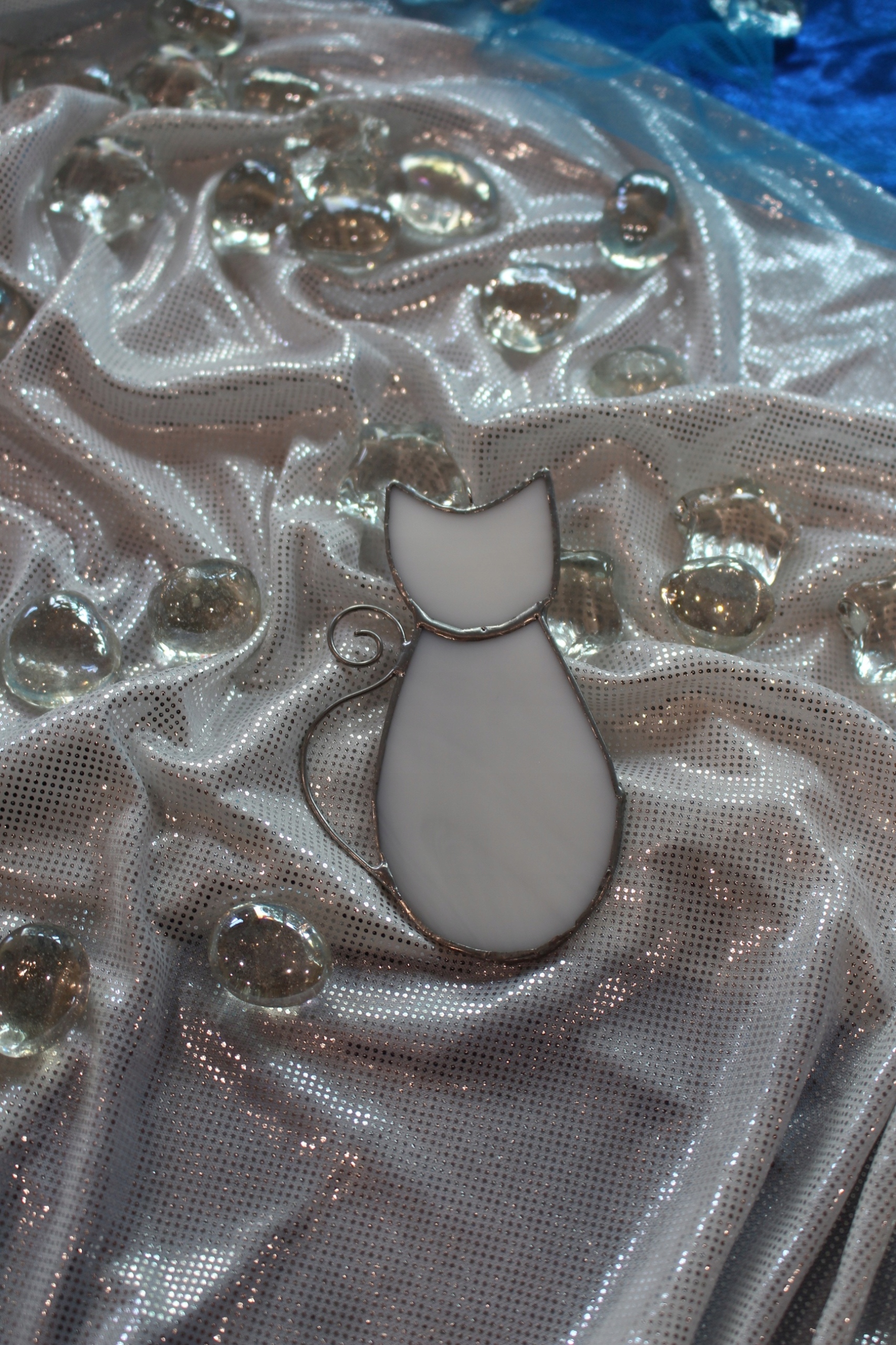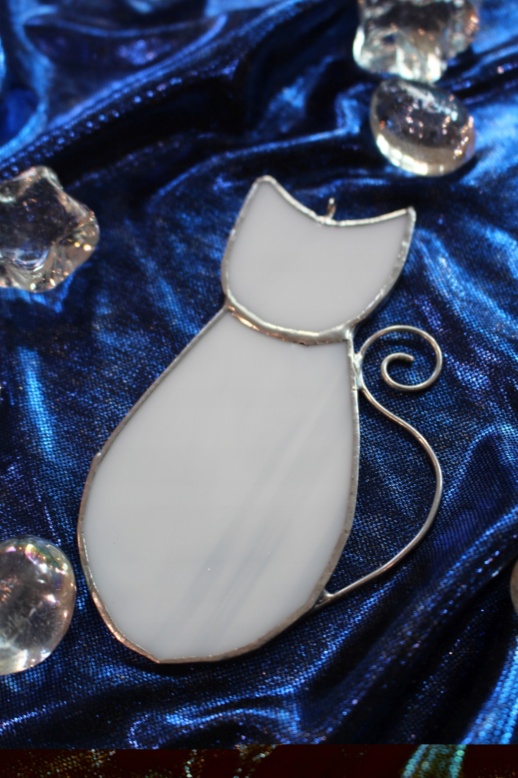 Kotek witrażowy z białego szkła.