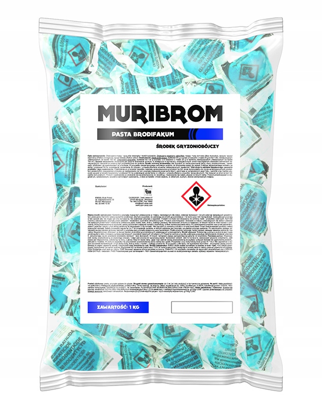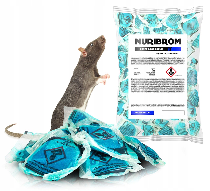 MURIBROM PASTA BRODIFAKUM to skuteczna pasta do zwalczania szczurów i myszy, opracowana z myślą o efektywności i bezpieczeństwie. Dzięki atrakcyjnym składnikom jest łatwo wykrywana przez gryzonie z dużej odległości. Zawiera mocny rodentycyd brodifakum – najskuteczniejszą substancję czynną, która zapewnia 100% śmiertelności już po jednorazowym spożyciu. Gryzonie umierają bezstresowo w wyniku wewnętrznego krwotoku, często w miejscach oddalonych od aplikacji. Dzięki temu inne gryzonie nie stają się podejrzliwe i nadal konsumują przynętę, co zwiększa skuteczność eliminacji. Dodatkowo pasta zawiera gorzką substancję, która chroni przed przypadkowym połknięciem przez ludzi i zwierzęta domowe.