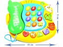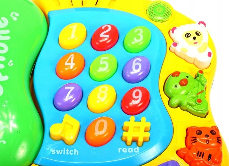 Нажав на цифры, мы услышим названия чисел, нажав кнопку животного мы услышим его имя и звук. (овца, птица, кошка) кнопки в форме сердца, круга, треугольника и квадрата-мы услышим разные мелодии. Кнопка nutka изменяет режим игры. При использовании телефона загорается свет Трубка, прикрепленная с помощью шнура