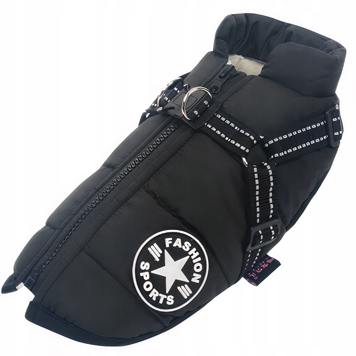 Куртка с вшитыми подтяжками светоотражающие, позволяющие закрепить поводок.