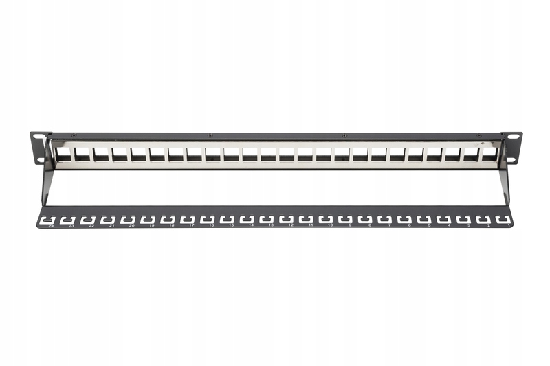 Возможность размещения до 24 экранированных или неэкранированных модулей Keystone RJ45. Дополнительно применены: нумерация портов и описательные поля, облегчающие управление.